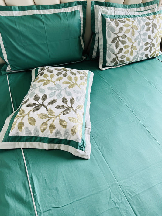 Emerald Green Cotton Luxury Embroidery Bedsheet