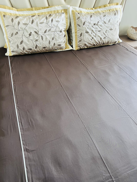 Dark Coffee Cotton Luxury Embroidery Bedsheet