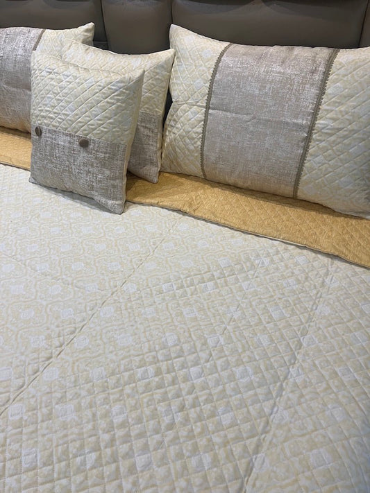 Light Yellow Reversible Quilted Bedcover 5pc Set