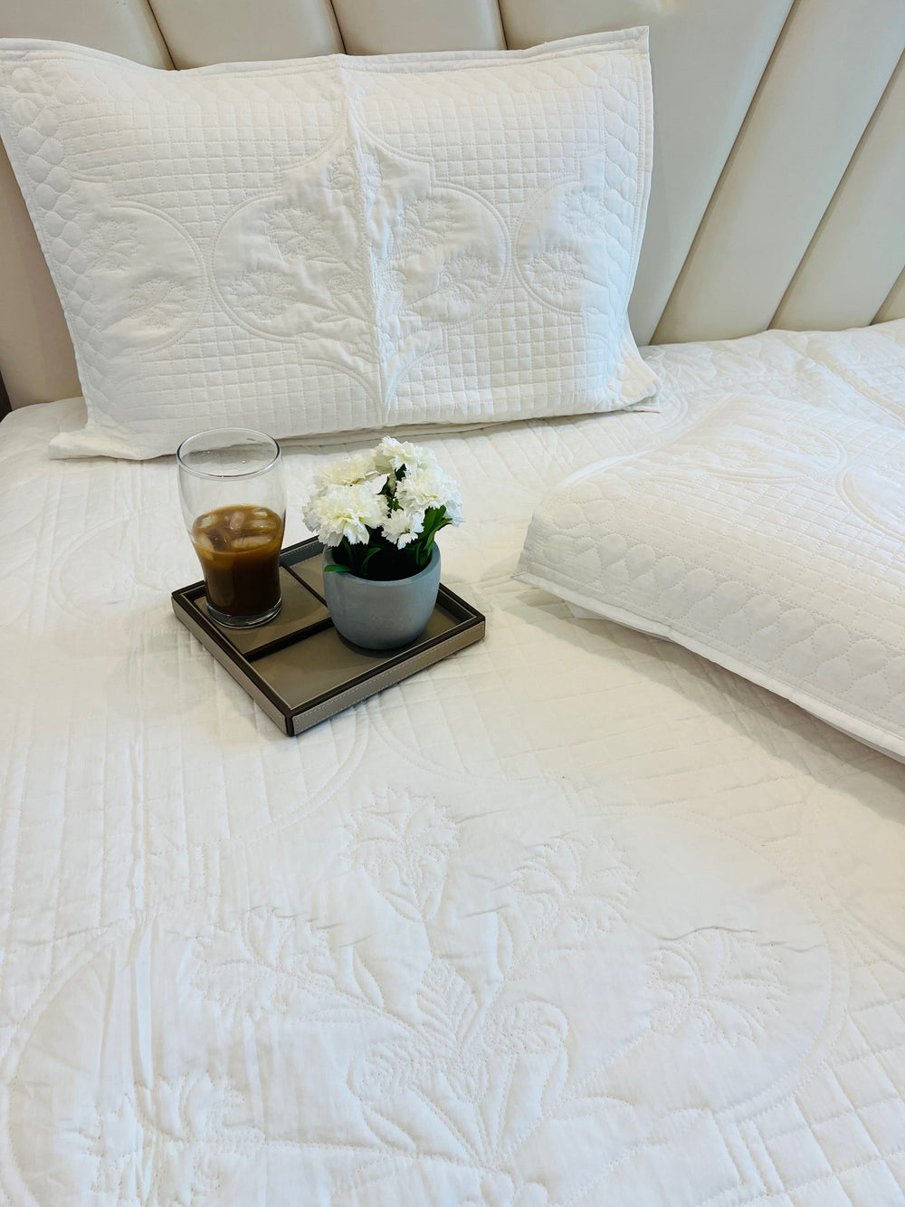Elevate your bedroom into a royal sanctuary with the Fanfare Signature Quilted Bedcover. Meticulously handcrafted using age-old Indian traditions, this piece is more than just bedding—it is a work of art. The intricate handblock patterns create a visual symphony, while the plush, breathable texture invites you to unwind in absolute luxury. Perfect for adding a touch of regal elegance to your modern home.