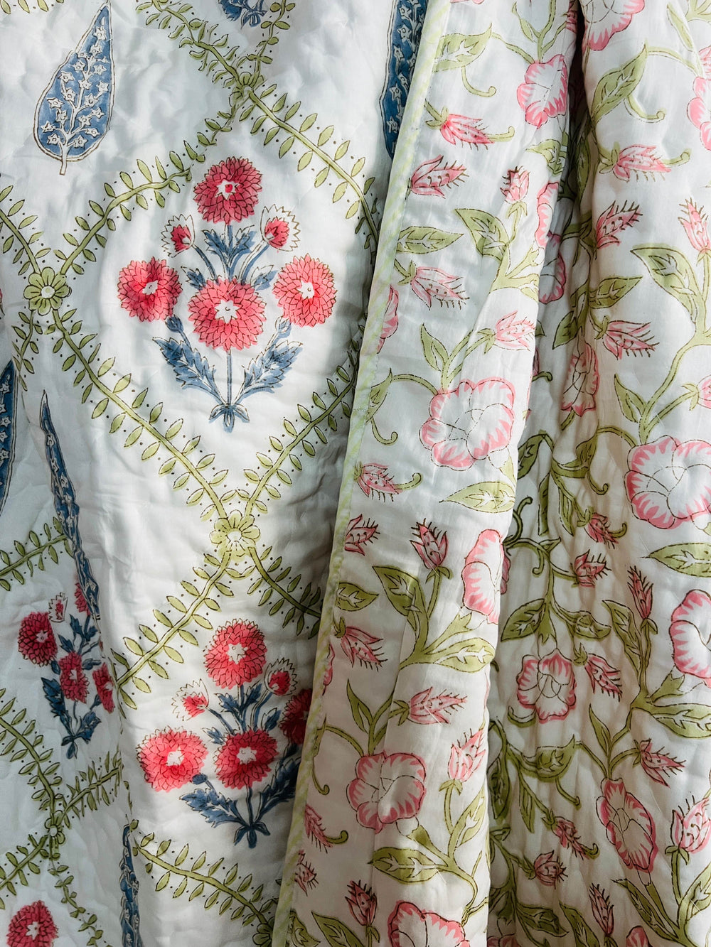 Green & Red Handblock Reversible Quilt