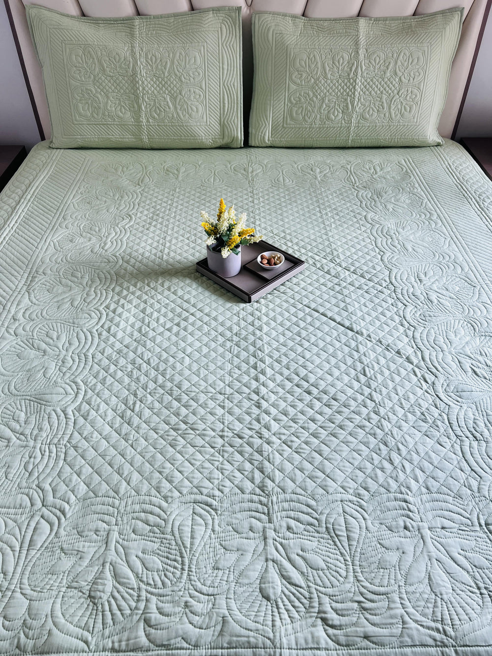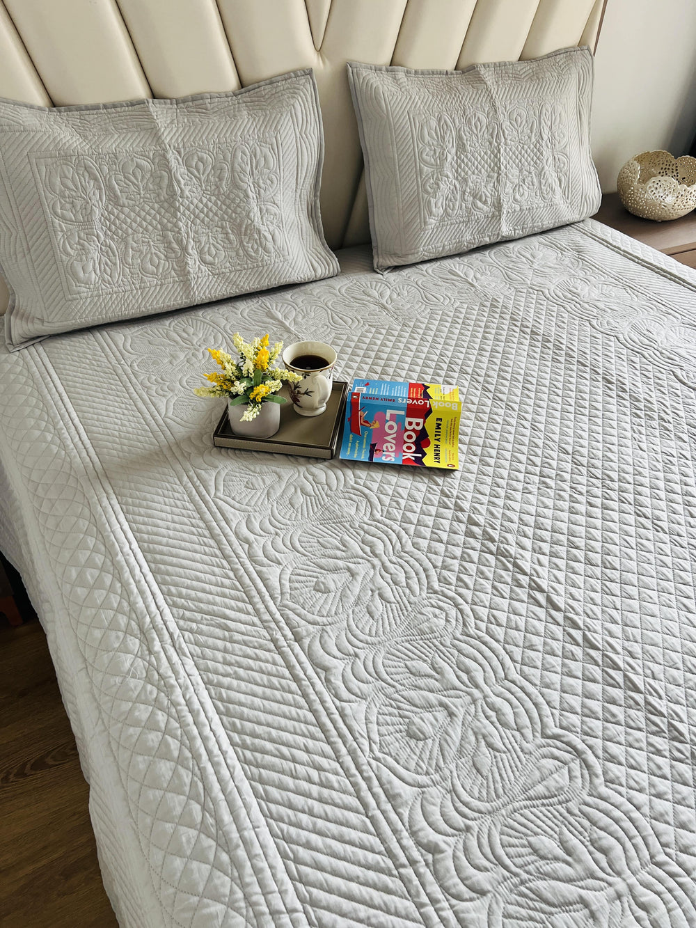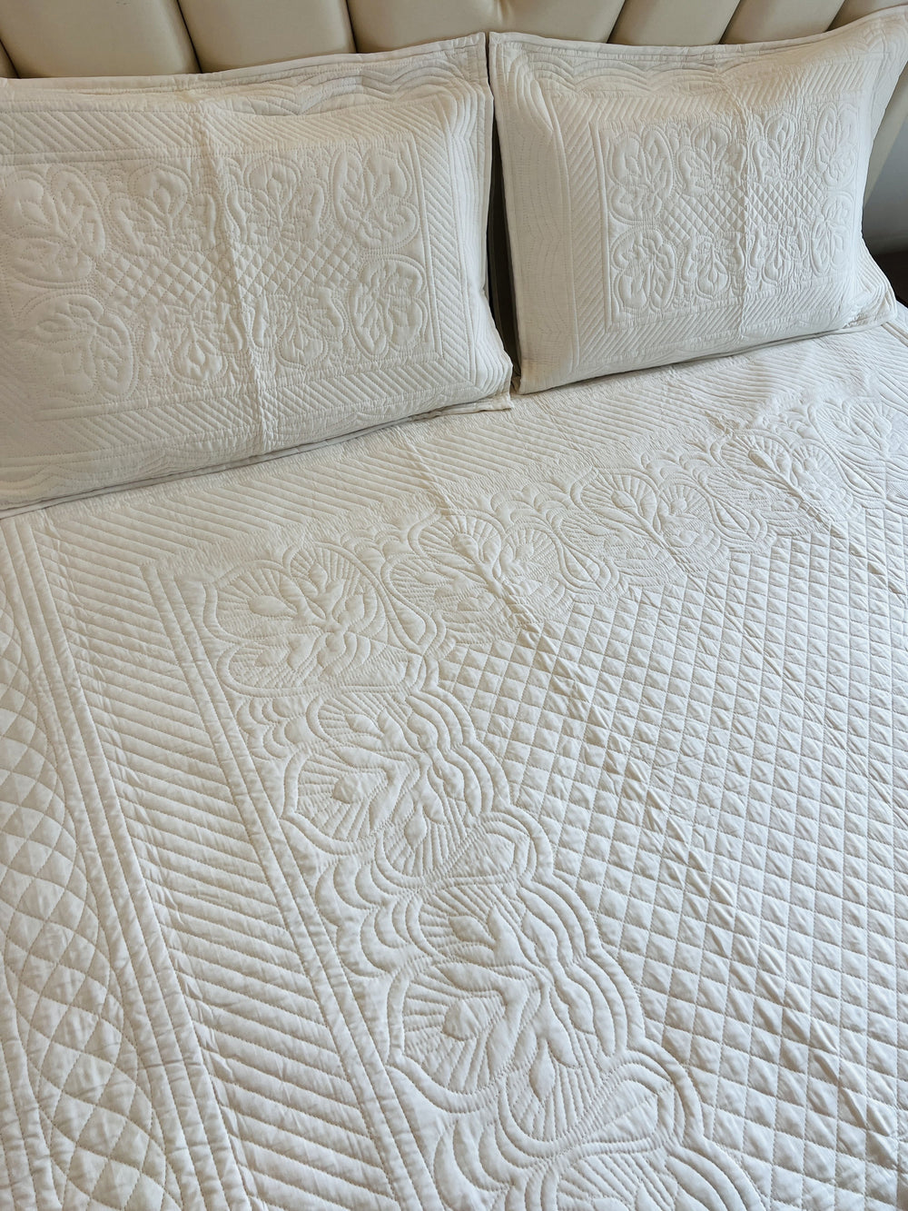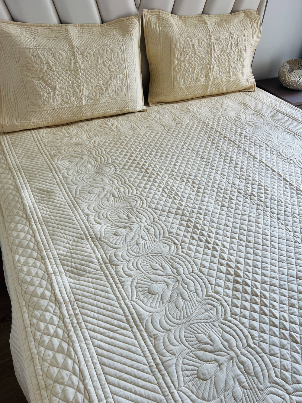 Elevate your bedroom into a royal sanctuary with the Fanfare Signature Quilted Bedcover. Meticulously handcrafted using age-old Indian traditions, this piece is more than just bedding—it is a work of art. The intricate handblock patterns create a visual symphony, while the plush, breathable texture invites you to unwind in absolute luxury. Perfect for adding a touch of regal elegance to your modern home.