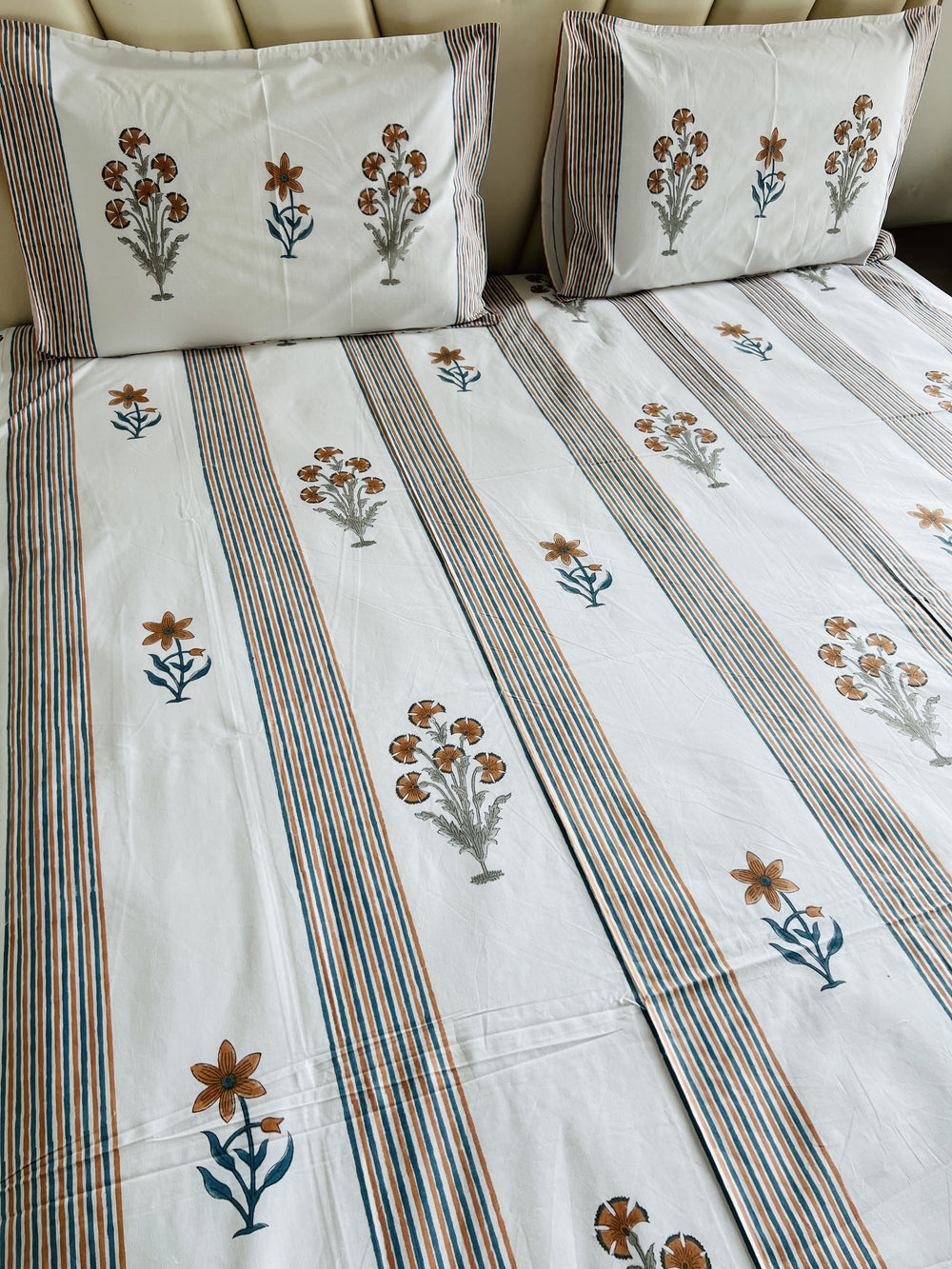Mustard Stripes Handblock Bedsheet